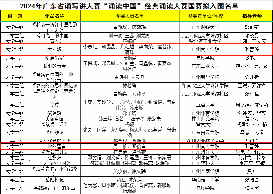 近日,2024 年广东省中华经典诵写讲大赛“诵读中国”经典诵读大赛开展评选工作,共有579个精心筹备的参赛作品同台竞技。经过初赛、复赛激烈角逐,大学生组共评选出30个作品进入国赛。